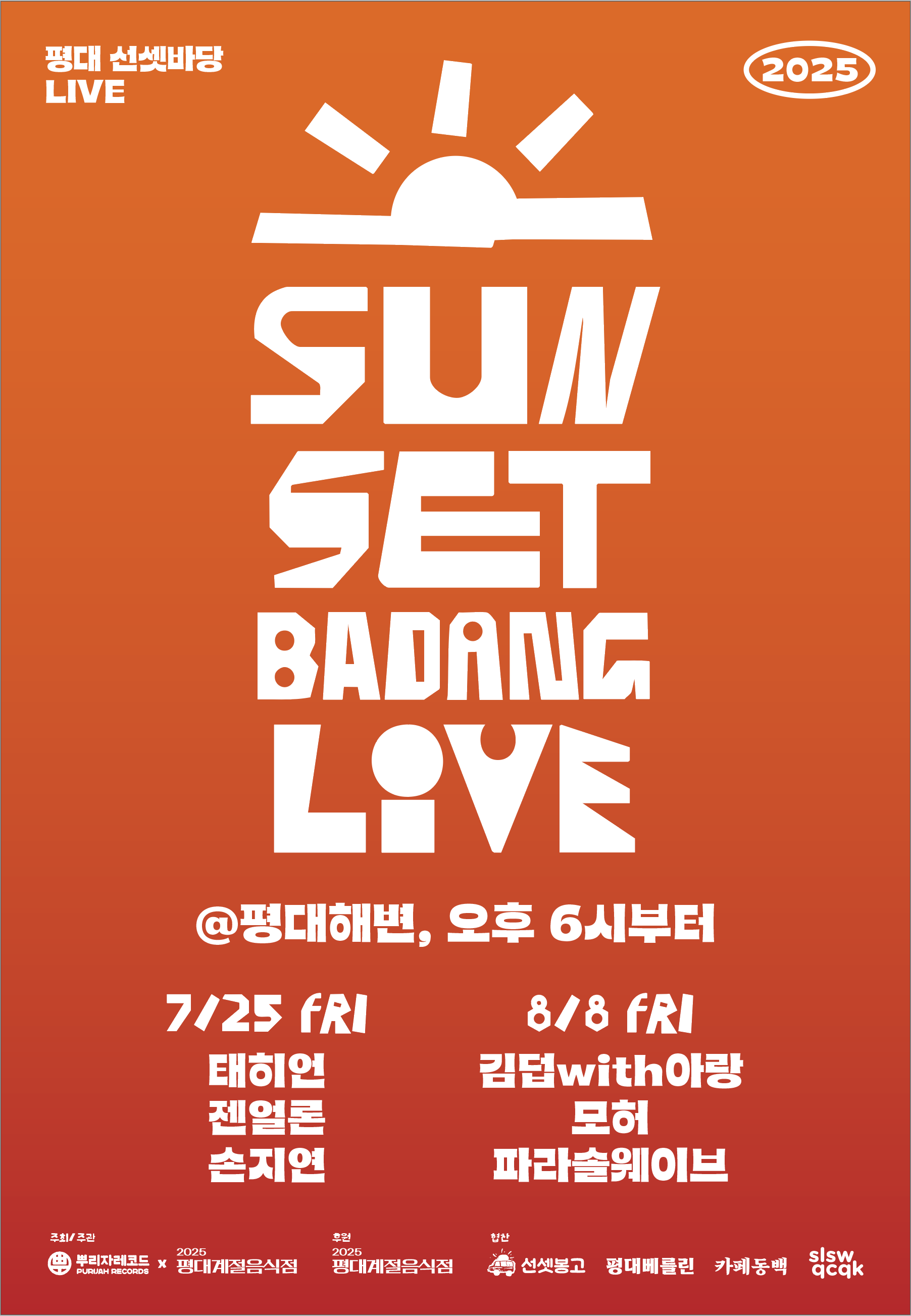 2023년부터 시작해서 올해 3년차를 맞이한 평대 선셋바당LIVE는 제주에서 주로 활동중인 싱어송라이터와 밴드들의 공연으로 이루어집니다.