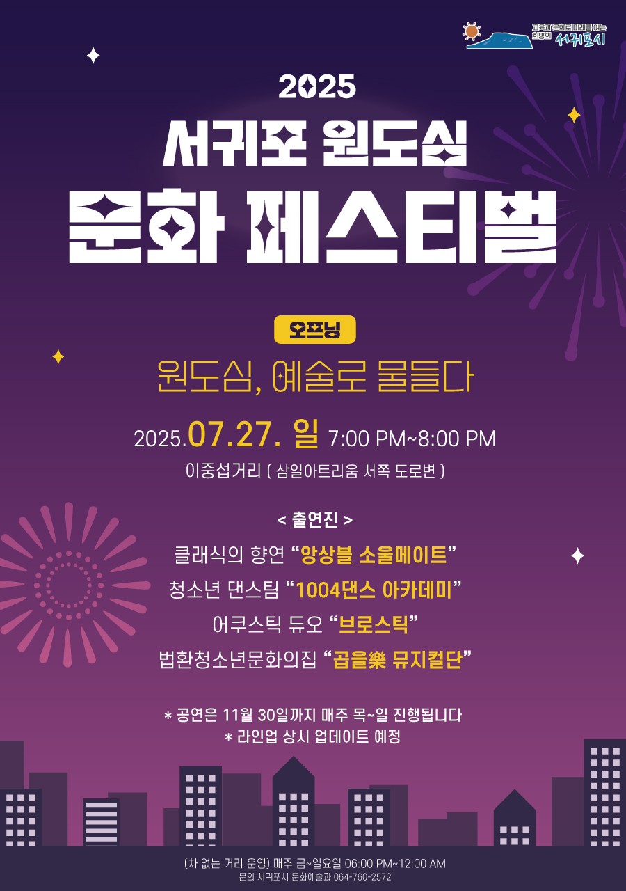 • 주소 (63595) 제주특별자치도 서귀포시 이중섭로 11 삼일아트리움 서쪽 도로변