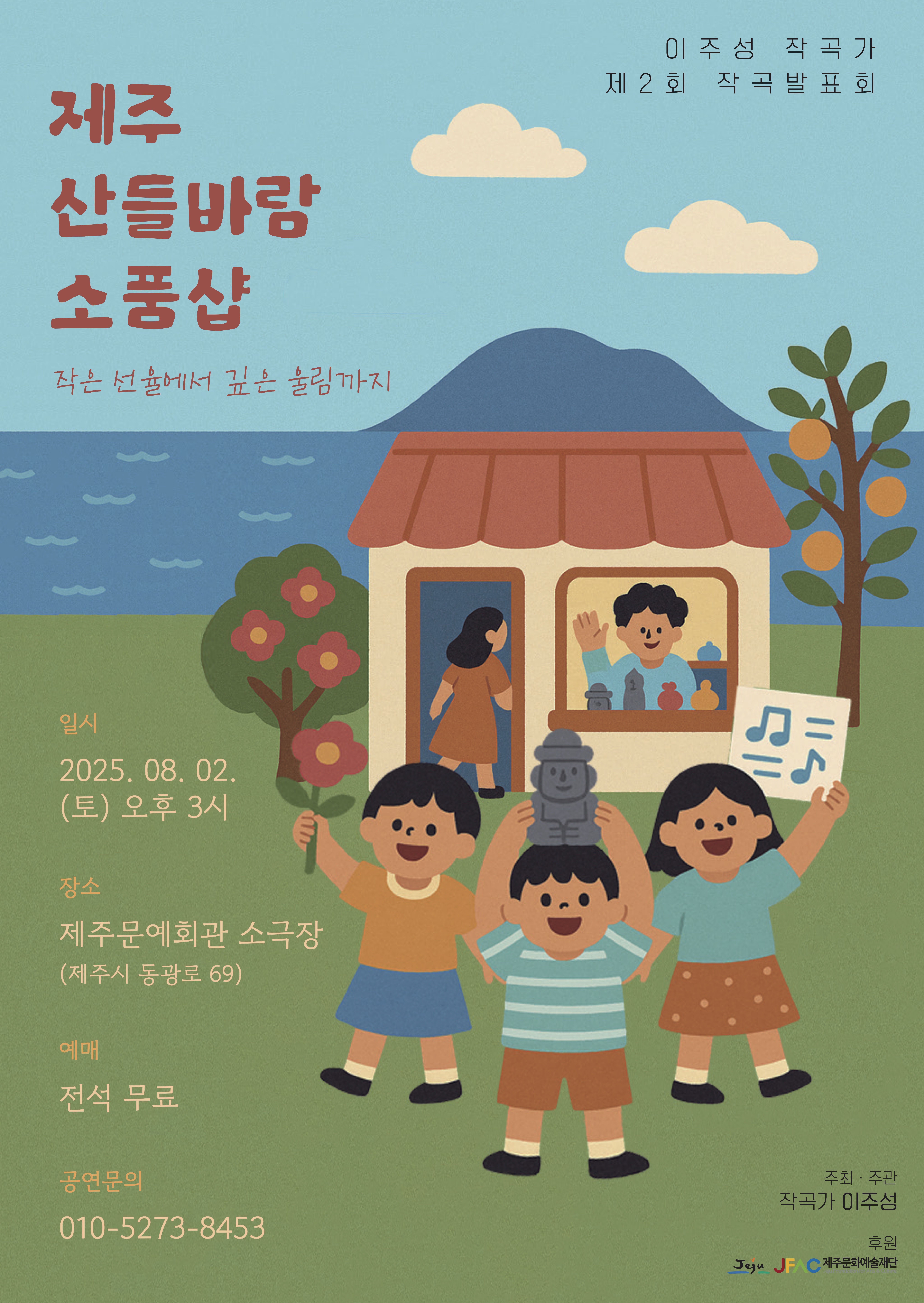 이번 공연에서는 저와 여러분 모두의 삶의 터전인 제주를 중심으로, 다양한 키워드를 담은 <편히 손에 쥘 수 있는 소품 같은 음악들>을 작곡해 보았습니다.