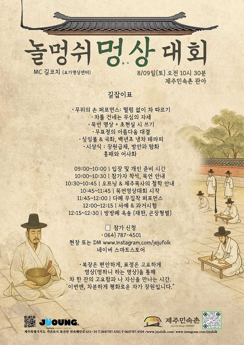 제주민속촌 -놀멍쉬멍상 대회 다례와 명상이 만나는 고요한 시간의 초대
