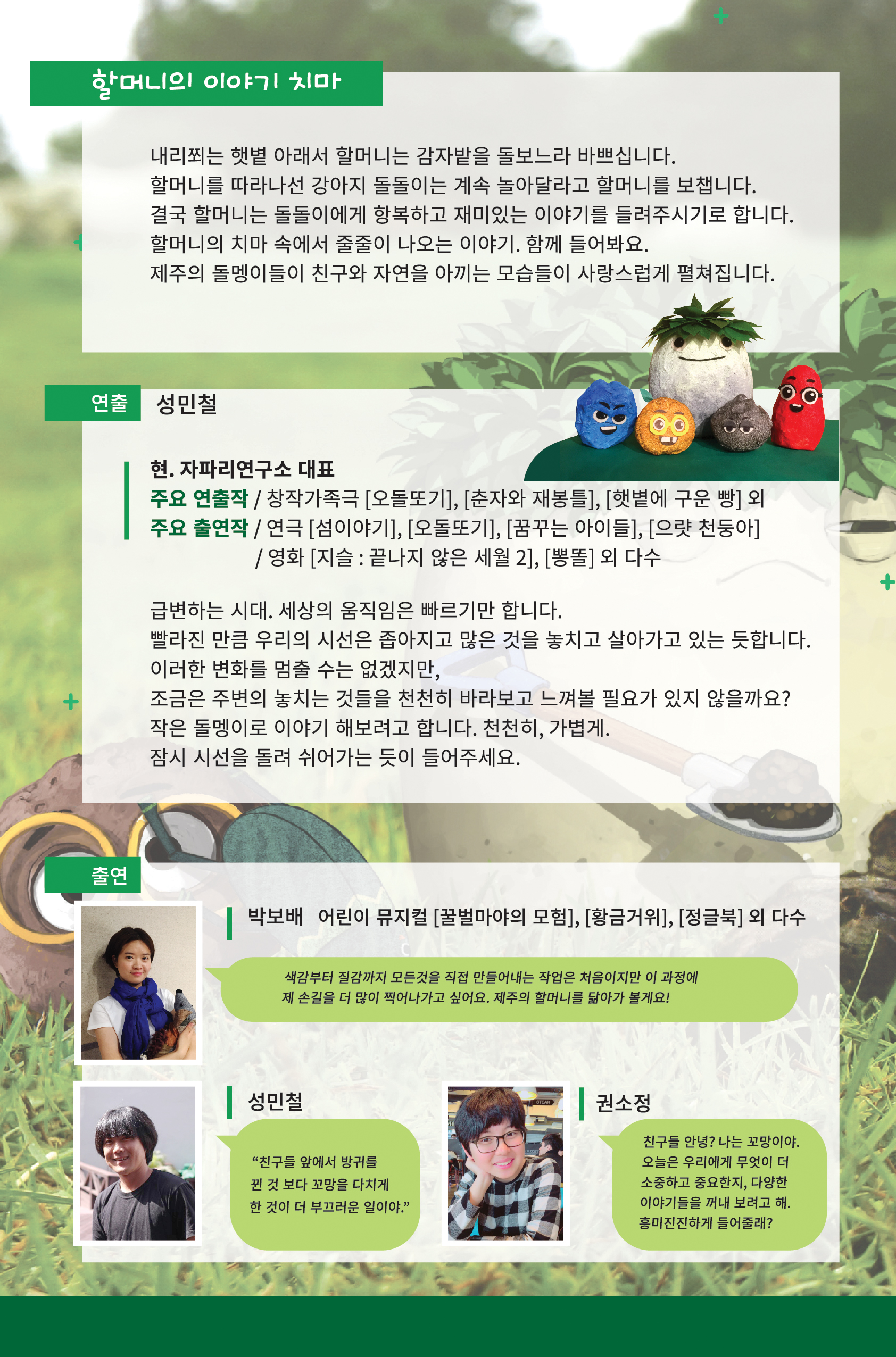 따뜻한 햇살, 싱그러운 흙내음처럼 다가오는 창작가족극 [할머니의 이야기치마] 로 놀러오세요!