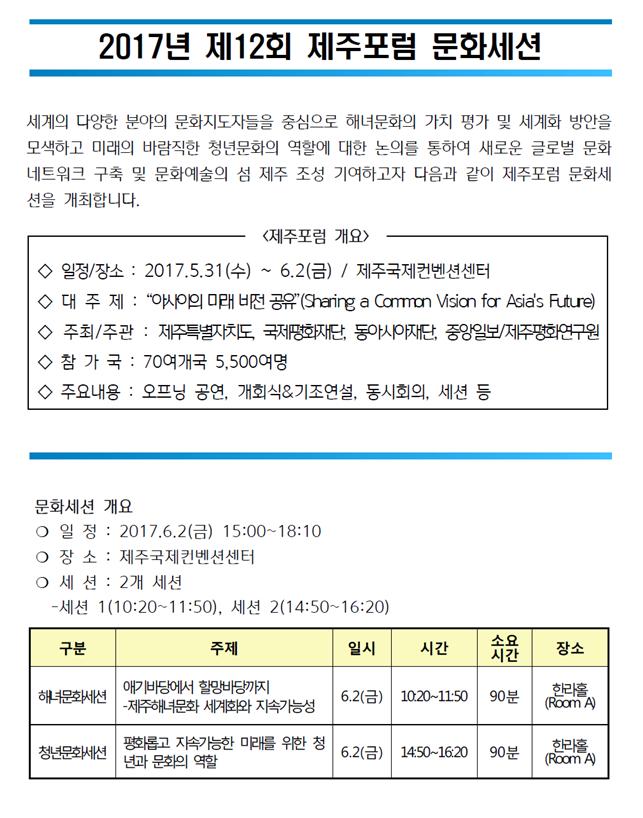 제주포럼 문화세션(해녀문화/청년문화)