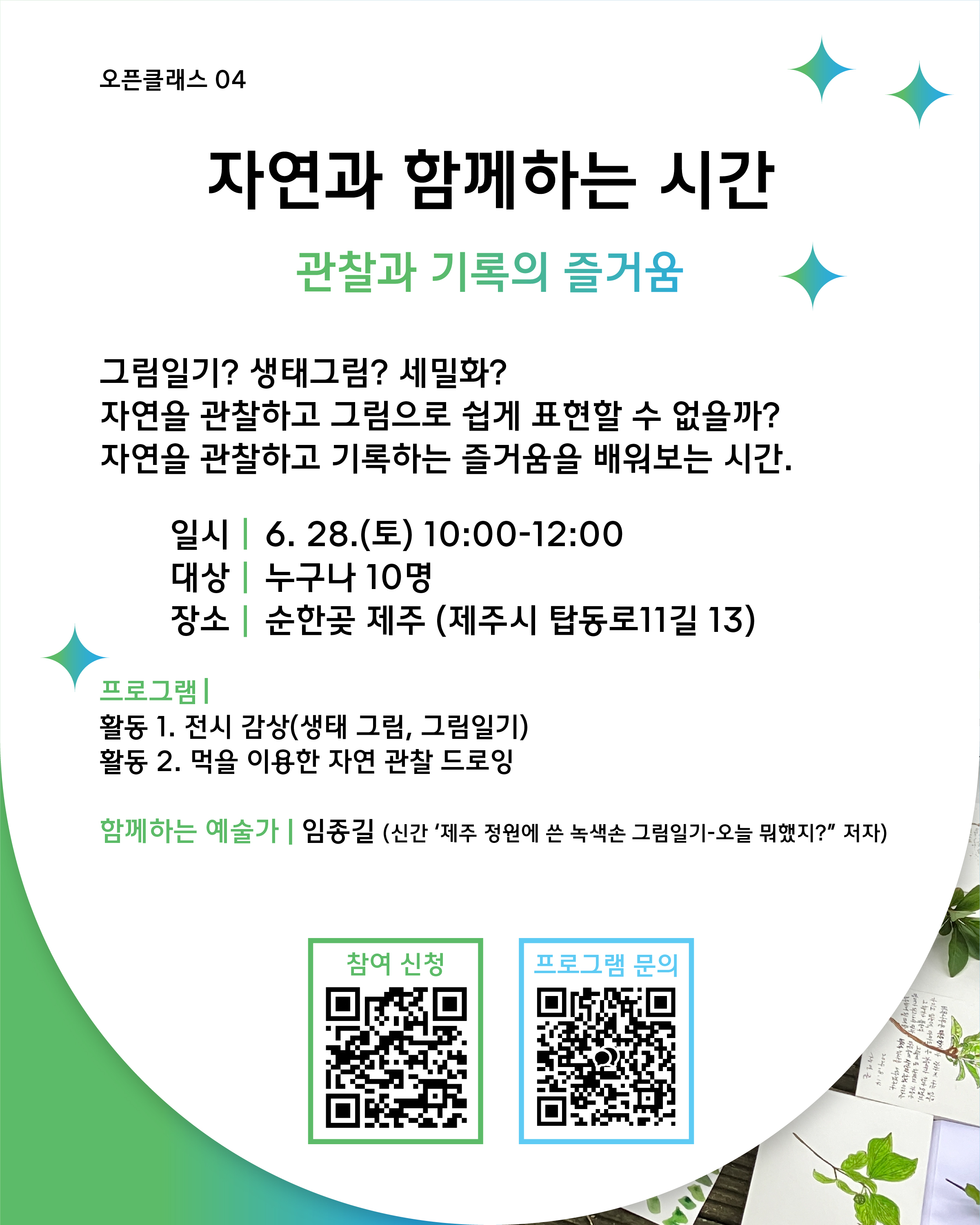 ○ 관찰과 기록의 즐거움: 6.28.(토) 10:00 / 누구나 / 순한곶제주