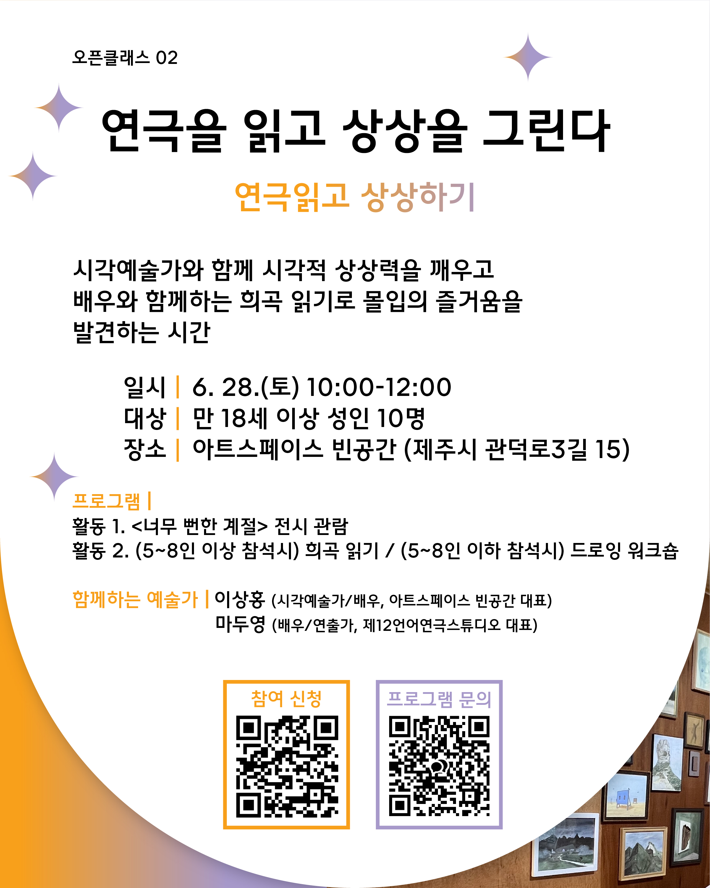 ○ 연극읽고 상상하기: 6.28.(토) 10:00 / 만 18세 이상 / 아트스페이스빈공간