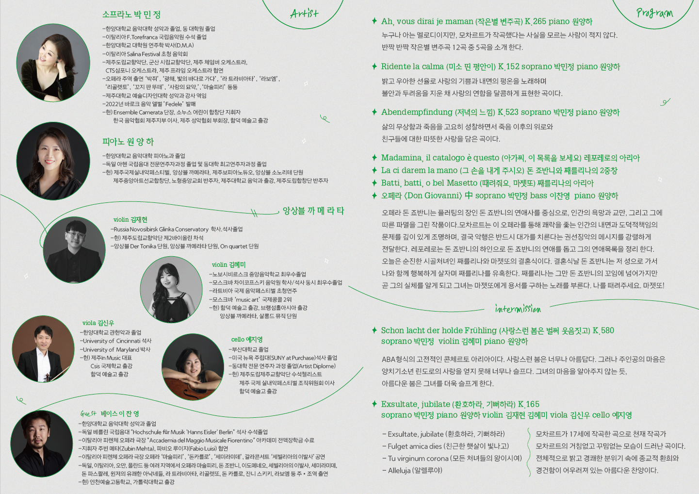 모차르트의 음악속에 담긴 다채로운 감정들을 함께 느끼고 나누는 시간되길 기대합니다.