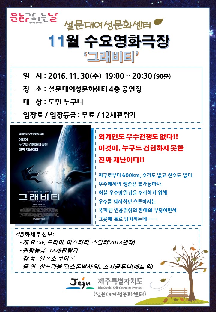 11월 문화가 있는 날 수요영화극장을 운영할 예정입니다.