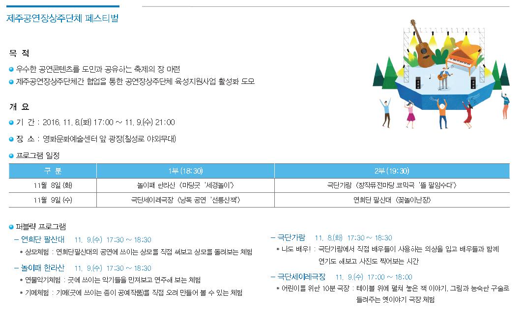 • 주소 (63277) 제주특별자치도 제주시 중앙로5길 6 영화문화예술센터 앞 광장(칠성로 야외무대)