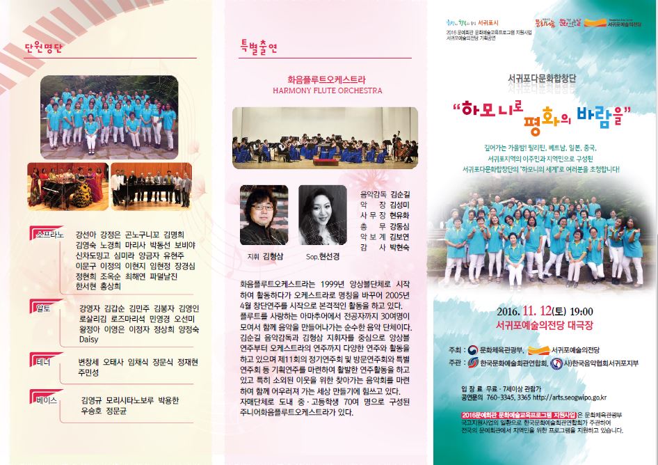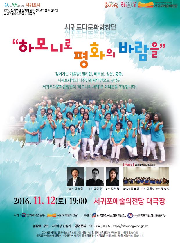 《서귀포예술의전당 기획공연 서귀포다문화합창단 "하모니로 평화의 바람을" 안내》