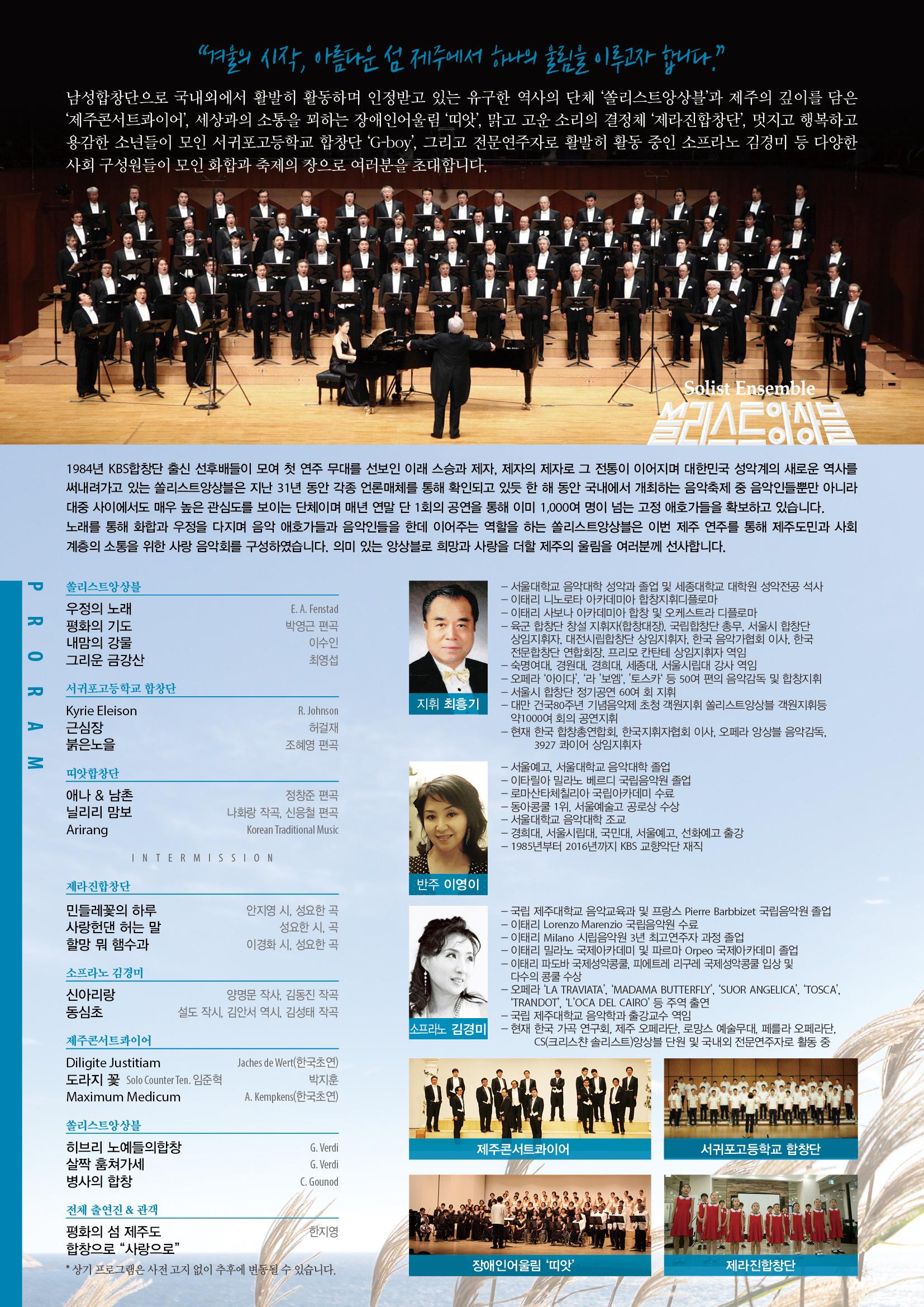 행사명 : 쏠리스트 앙상블과 함께하는 사랑더하기 음악회 "제주의 울림"