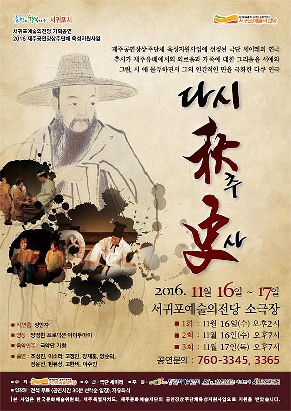 < 서귀포예술의전당 기획 공연장상주단체 연극 "다시 추사" 〉