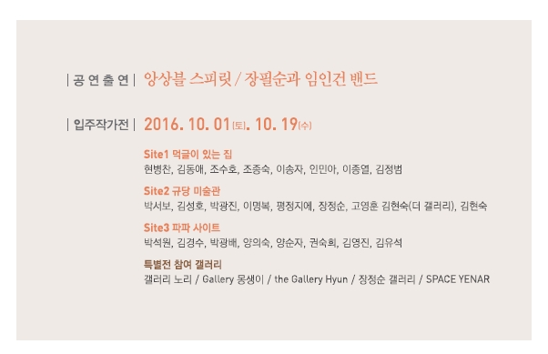 - 합동전시 : 3개소(규당미술관, 먹글이 있는 집, 파파사이트)