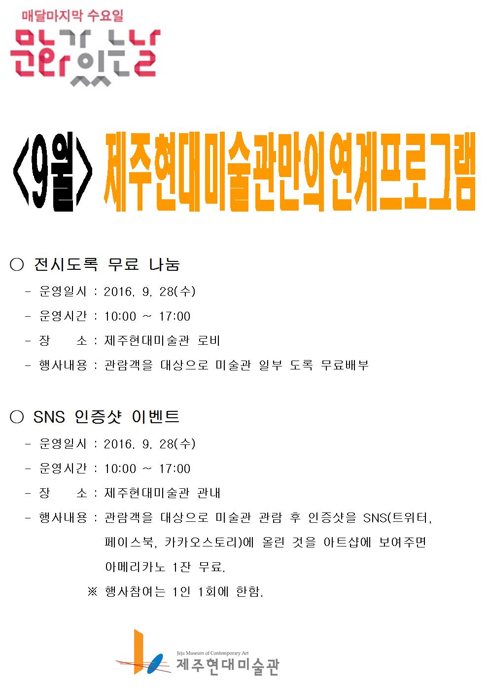 ♡9. 28(수) 문화가 있는 날♡ 제주현대미술관만의 연계 프로그램
