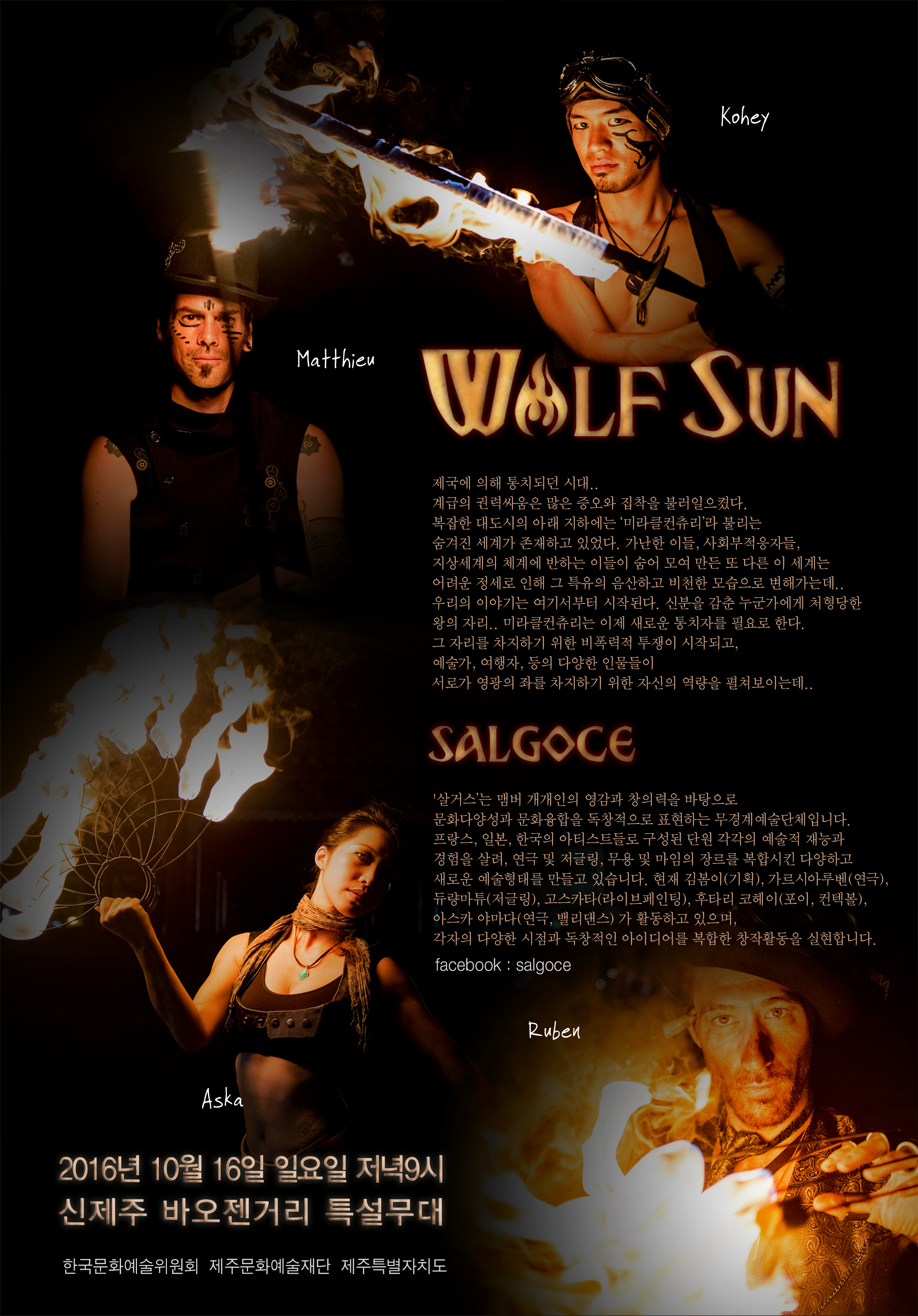 의도입니다. 파이어 퍼포먼스라는 기본 장르에 라이브페인팅과 연극적인 요소를 가미한 복합장르의 퍼포먼스입니다.