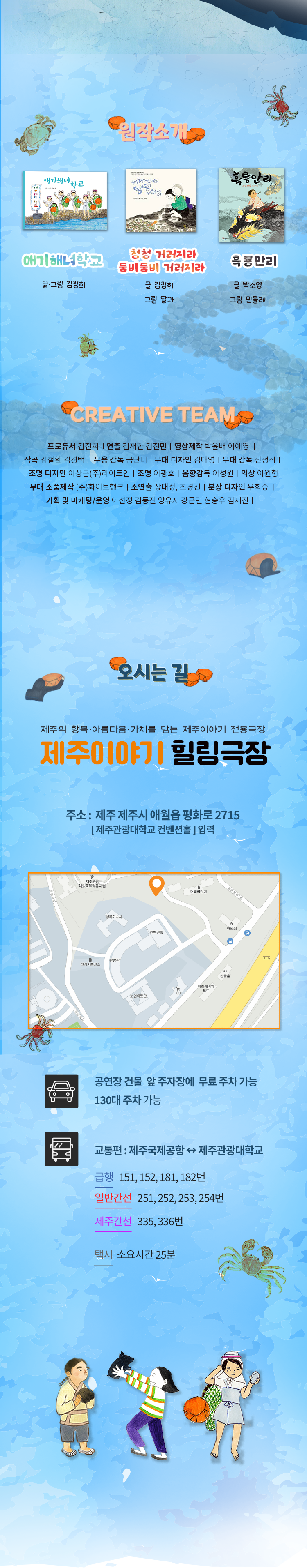 - 주소 (63063) 제주특별자치도 제주시 애월읍 평화로 2715 제주이야기 힐링극장 (제주관광대학교 컨벤션 홀)