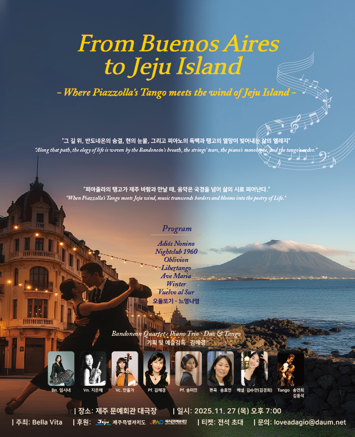 피아졸라의 탱고를 반도네온과 현악 ,피아노의 앙상블로 연주하며 탱고 댄서의 안무도 곁들여지는 멀티플한 흥미진진한 스테이지가 펼쳐진다