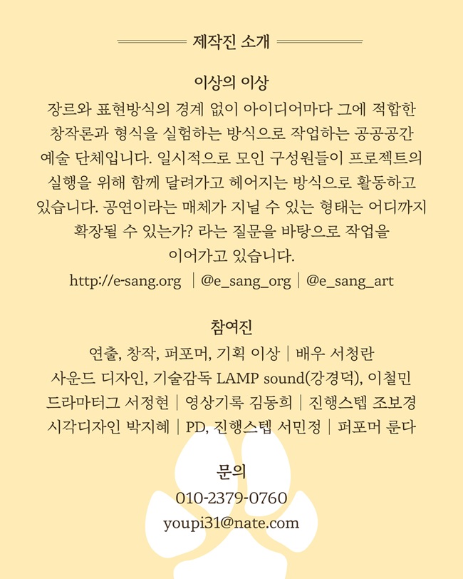 - 연출, 창작, 퍼포머, 기획 : 이상