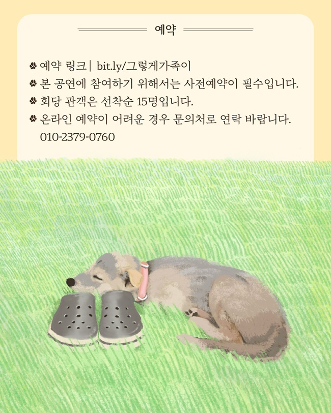 본 공연에 참여하기 위해서는 사전예약이 필수입니다. 회당 관객은 15명으로 한정됩니다. 예약링크 - https://bit.ly/3XOOjA7
