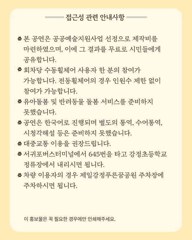 - 후원 : 제주문화예술재단, 제주특별자치도