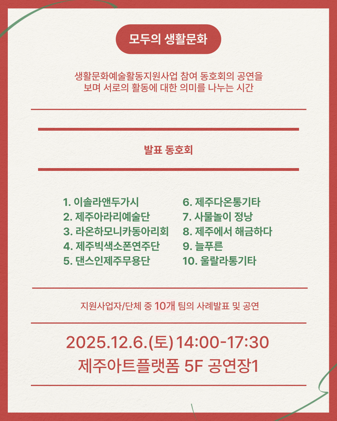 ▪️대상: 문화예술을 사랑하는 제주도민 누구나