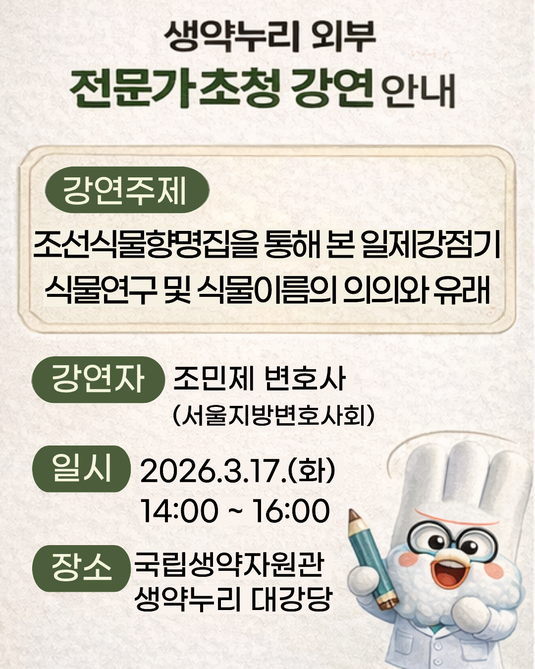 ❍ 강연 주제 : 조선식물향명집을 통해 본 일제강점기 식물연구 및 식물이름의 의의와 유래