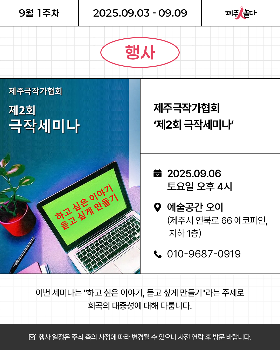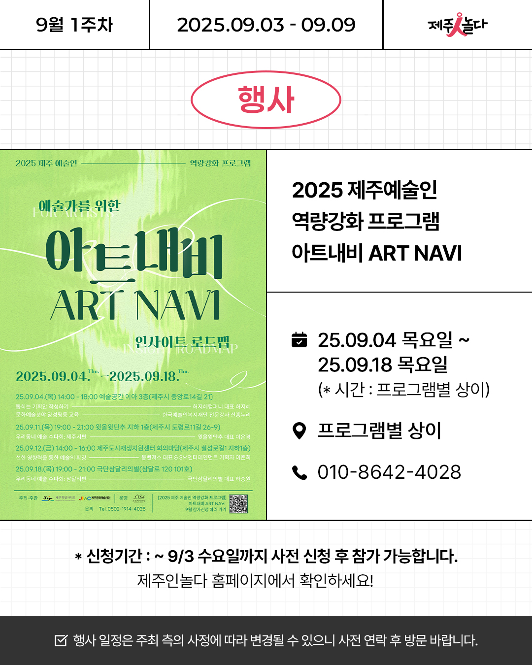 [카드뉴스] 2025년 9월 첫째 주 문화예술 행사소식