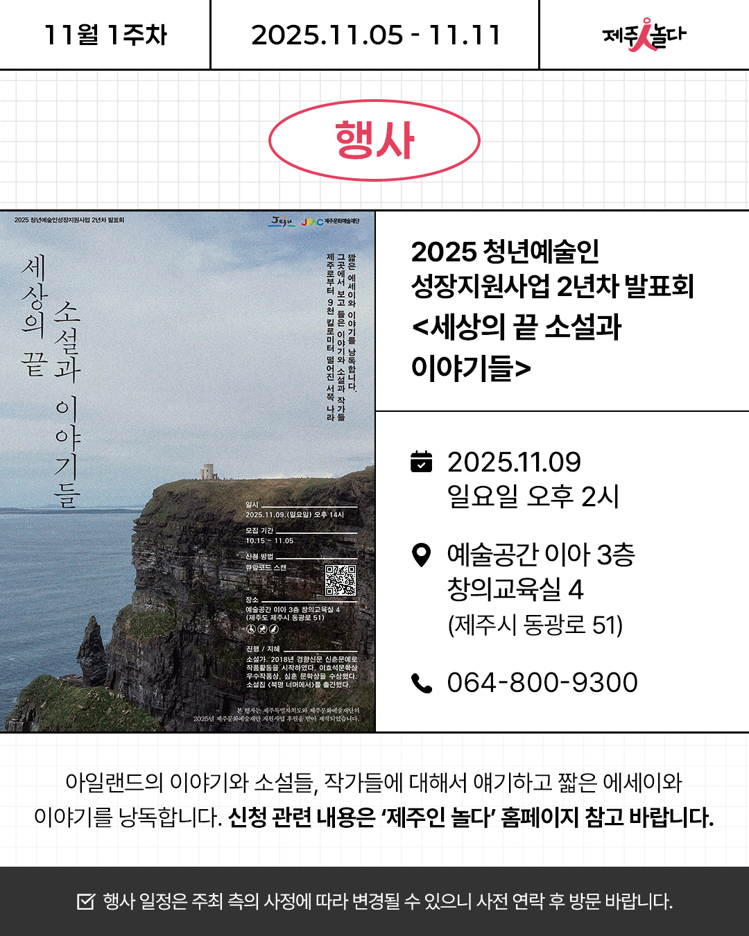 [카드뉴스] 2025년 11월 첫째 주 문화예술 행사소식
