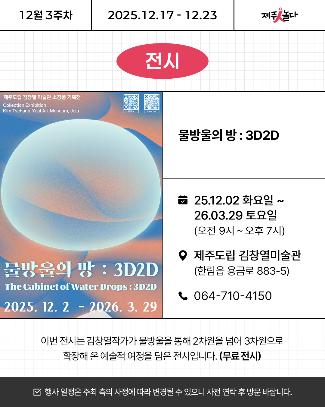 [카드뉴스] 2025년 12월 셋째 주 문화예술 행사소식
