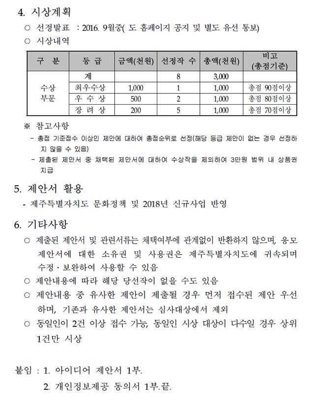 | 첨부 #1 | 1. 문화예술분야 신규사업 발굴 아이디어 제안공모 공고.hwp (23 KBytes) | ||