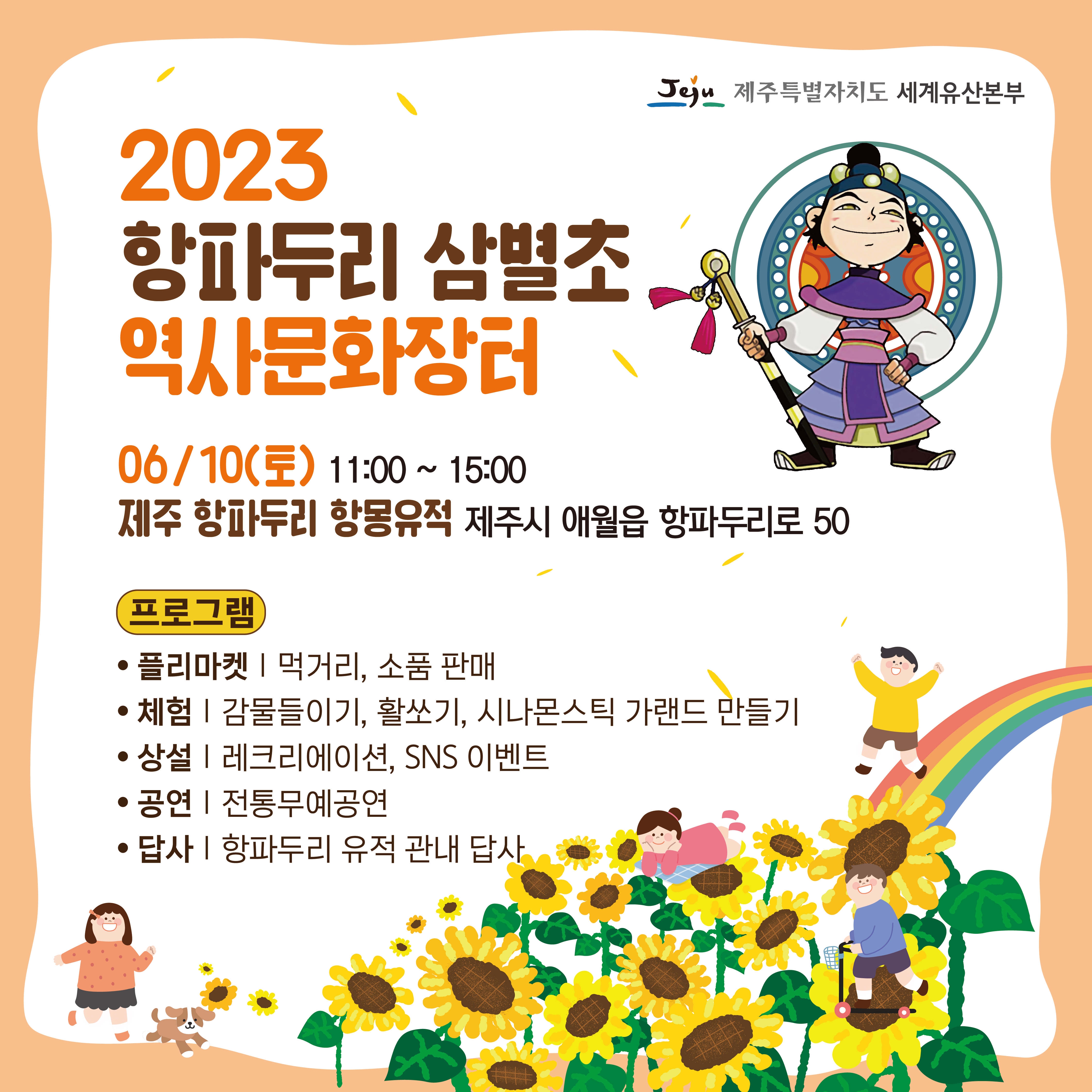 벼룩장터 등 셀러 참여는 항파두리 (밴드)삼별초역사문화장에서