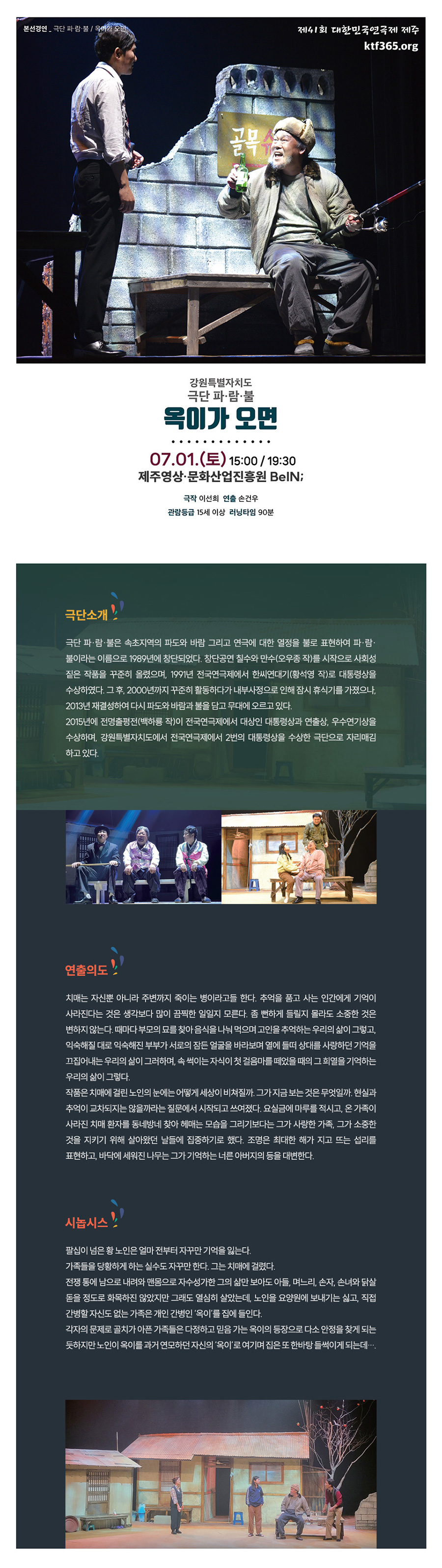 제41회 대한민국연극제 제주 본선경연 : 옥이가 오면 (강원)