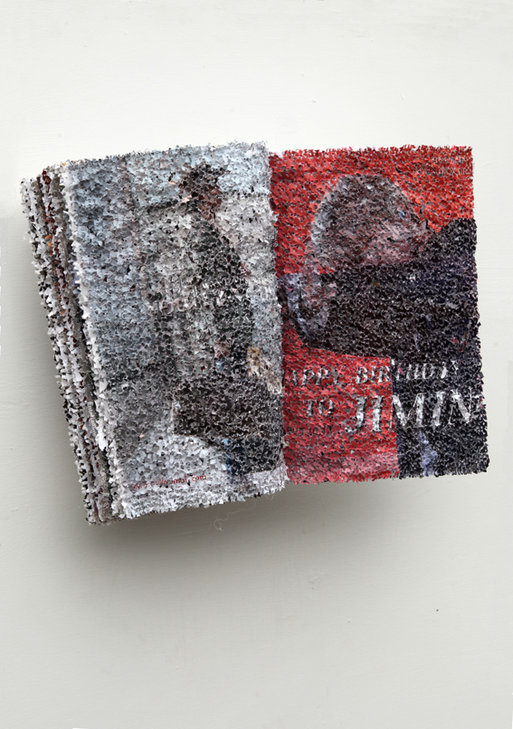 이지현의 작업 대상이 되는 책은 교과서도 있고 이름만으로도 심중구곡의 깊은 우물을 만들어주는 명저들, 역사에 남은 저술가들, 명망가들의 저술이다. 이 모든 대상들은 이지현의 삶과 연결되어 있는 ‘이야기’를 품고 있다. 옷의 경우도 마찬가지이다. 영천 레지던시 시절, 주민들에게 받은 옷이 담고 있는 이야기, 대구에 바치는