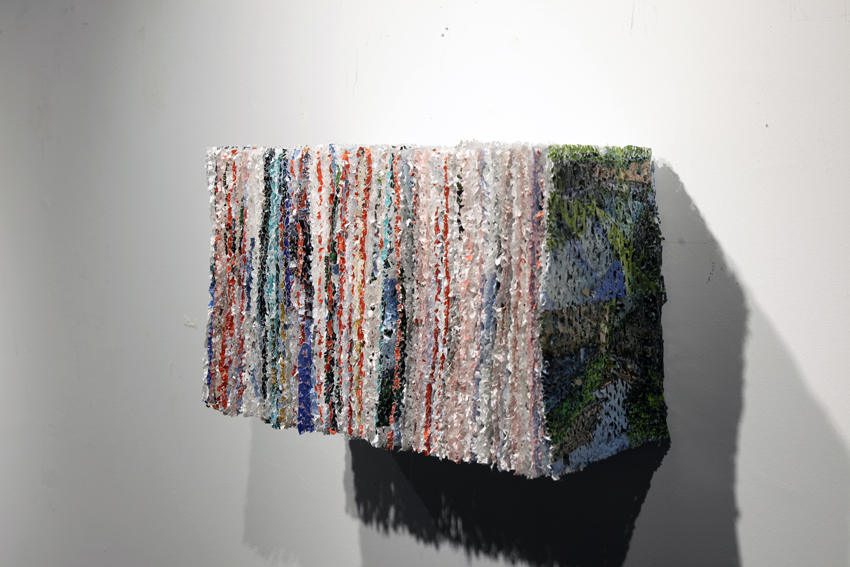해방의 몽타주. 이지현이 작업하는 방식은 잘 알려져 있다. ‘해체하는 작가’로 알려진 이지현은 책을 고르고, 옷과 대화하고, 사진이나 신문을 뜯어내며 대상과 긴 시간 호흡을 하며 숨을 조절하는 작업을 한다. 대상을 뜯어내는 일련의 과정 때문에 이지현은 ‘해체하는’ 작가로도 불린다. 그는 무엇을 해체하는 것일까?