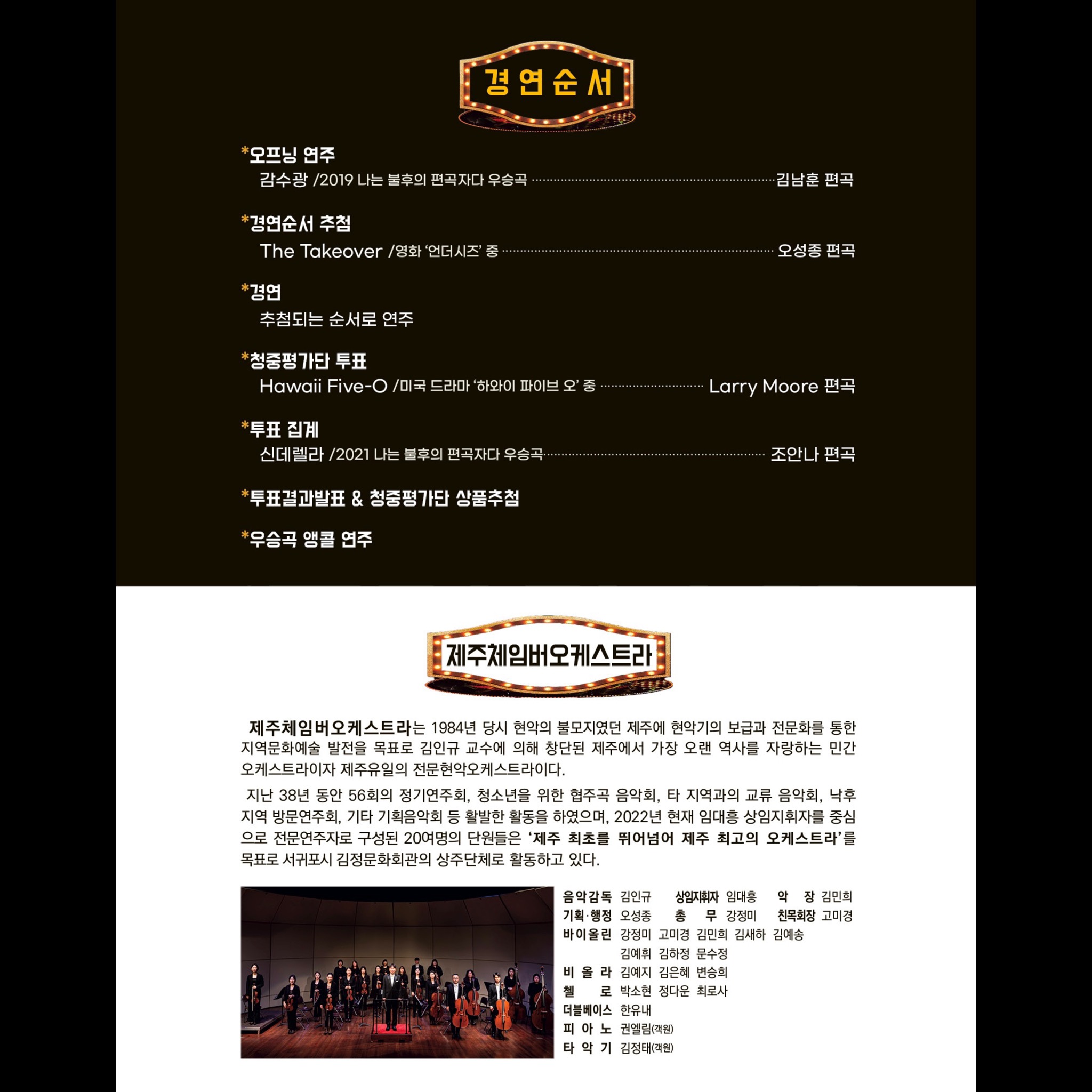#제주체임버오케스트라 #나는불후의편곡자다 #편곡을통한제주노래의재탄생 #청중평가단을모집합니다 #김정문화회관 #김남훈편곡 #해녀의노래 #김수하편곡 #오돌또기 #김원영편곡 #제주도의푸른밤 #문효진편곡 #오돌또기느영나영 #오민주편곡 #이어도사나 #많관부 #제주공연 #서귀포공연