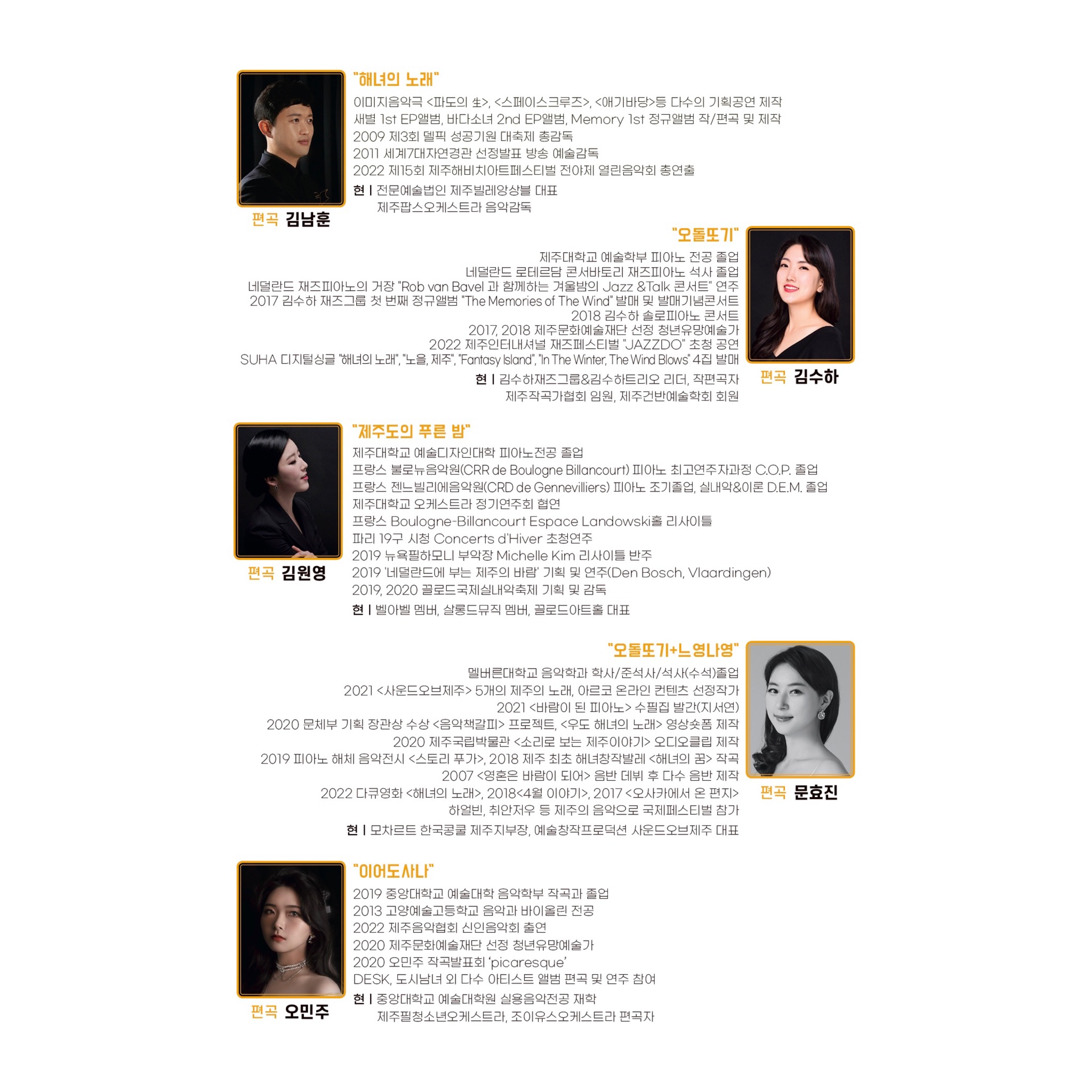 5명의 편곡자가 '제주노래를 재탄생'시키고 청중평가단의 투표로 우승곡이 선정됩니다.