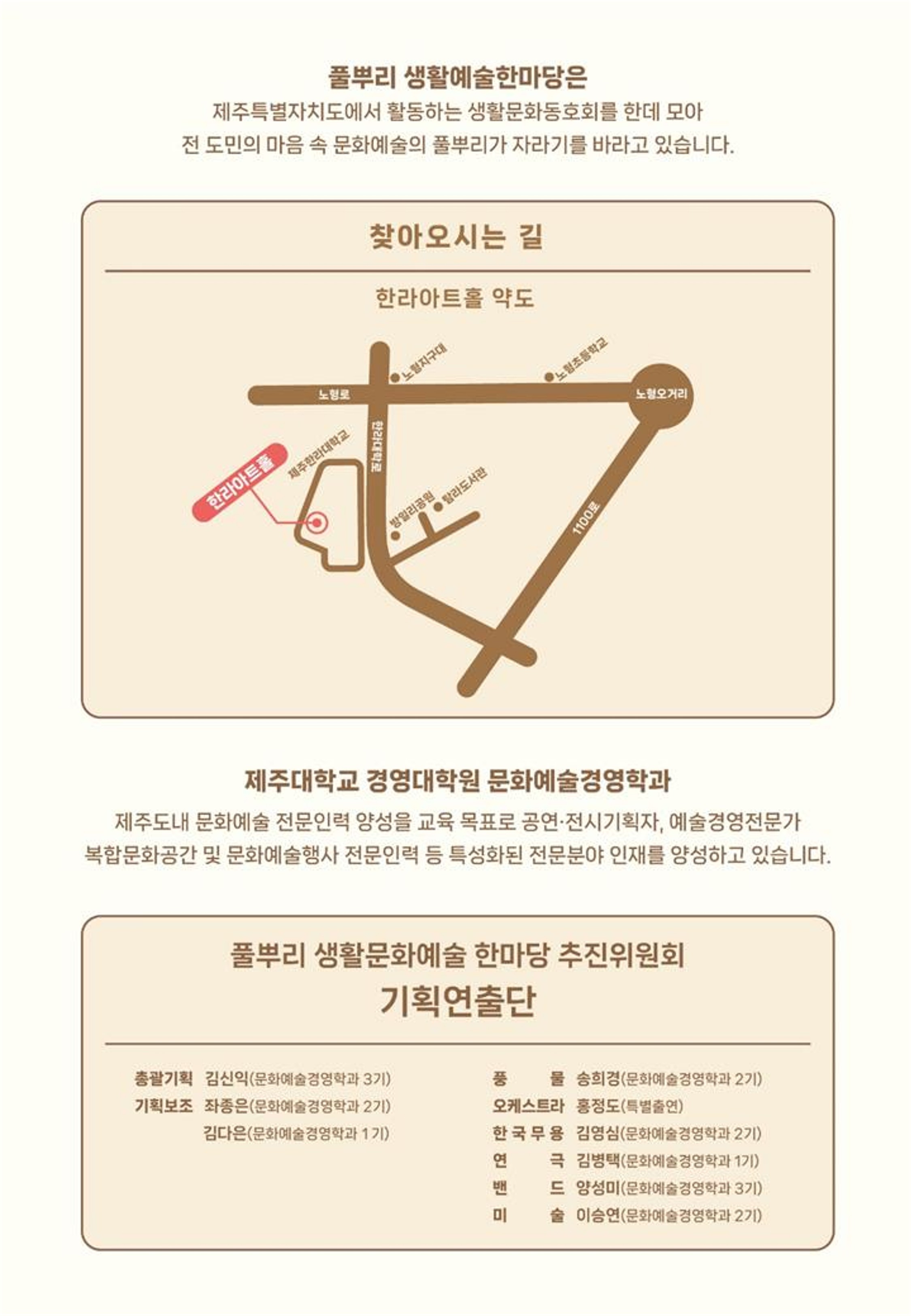 * 본 행사는 제주도내 생활문화예술동호회가 한 자리에 모이는 행사로, 공익을 위해 무료로 진행됩니다.