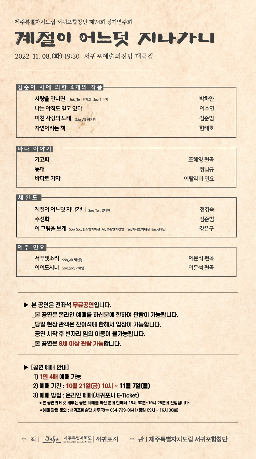 제주특별자치도립 서귀포합창단 제74회 정기연주회 <계절이 어느덧 지나가니>