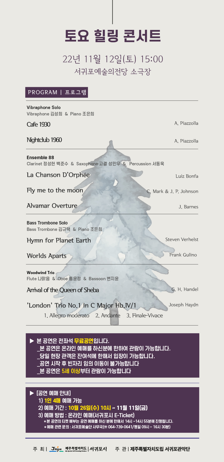 제주특별자치도립 서귀포관악단 11월 토요 힐링 콘서트