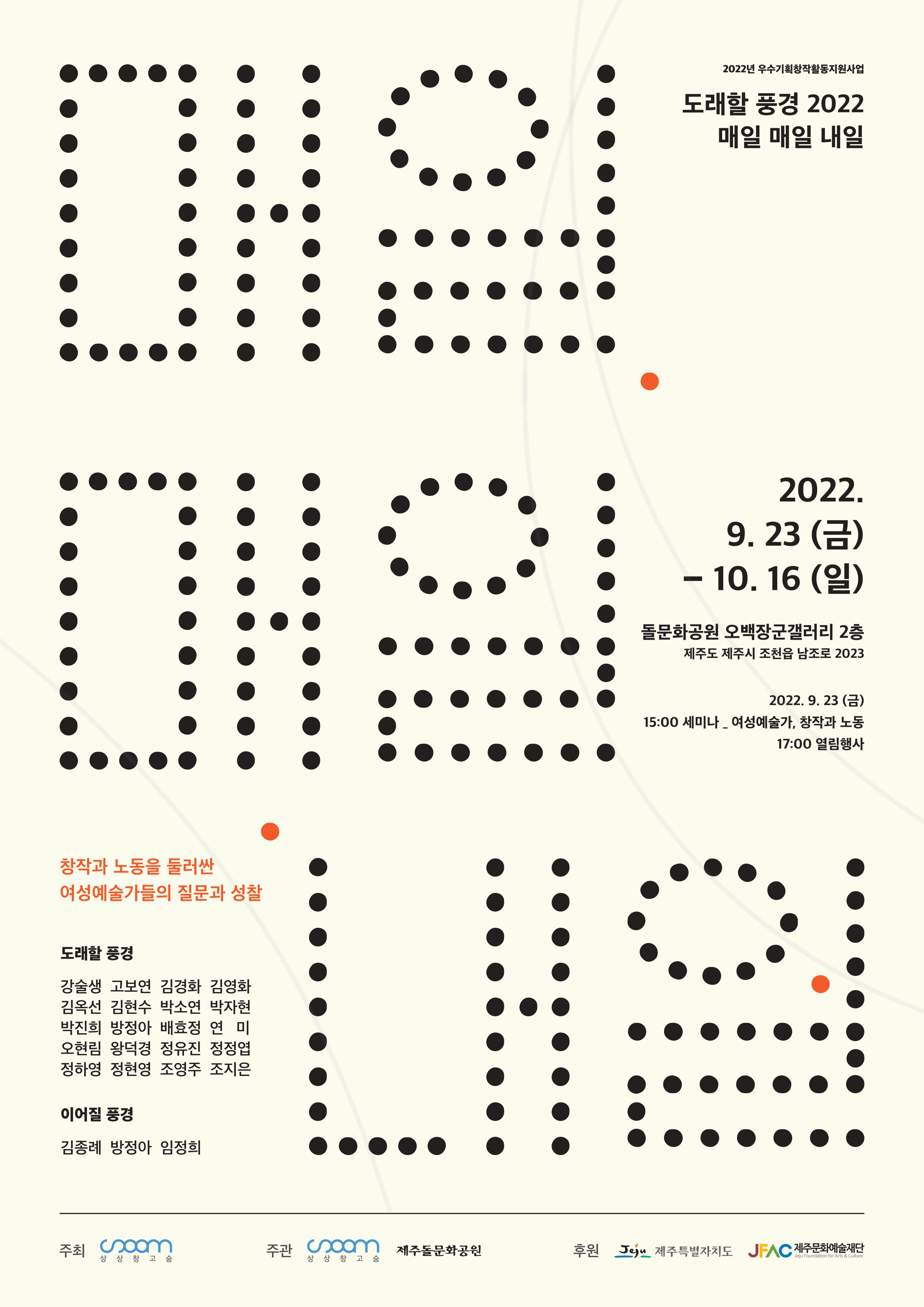 끊임없이 움직이는 추와 같은 불평등한 현실을 인지하고, 복합적이고 다양한 시선으로 편견 없이 바라보며 안전한 사회를 꿈꿀 수 있는 미래, 그 도래할 풍경을 여성예술가들의 연대와 공감으로 마중하고자 합니다.