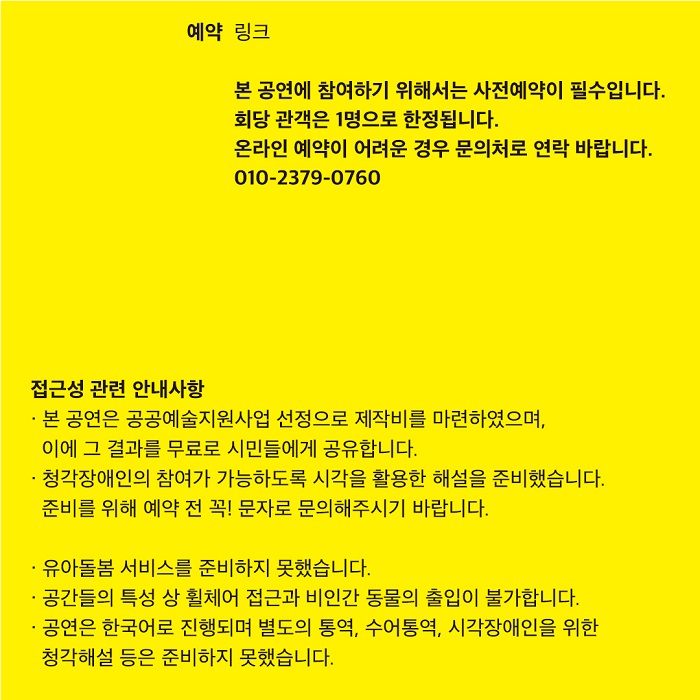 무료 공연인 관계로 인터넷 예매 시, 플레이티켓 회원가입을 해야만 신청하실 수 있습니다.