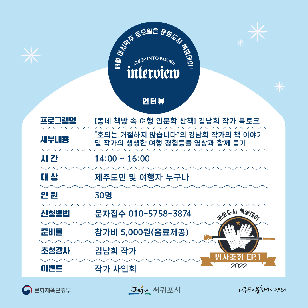 - [문화도시 인문학 초청강연 - 1탄] ‘김남희 여행작가’ 동네책방 속 여행 인문학 산책