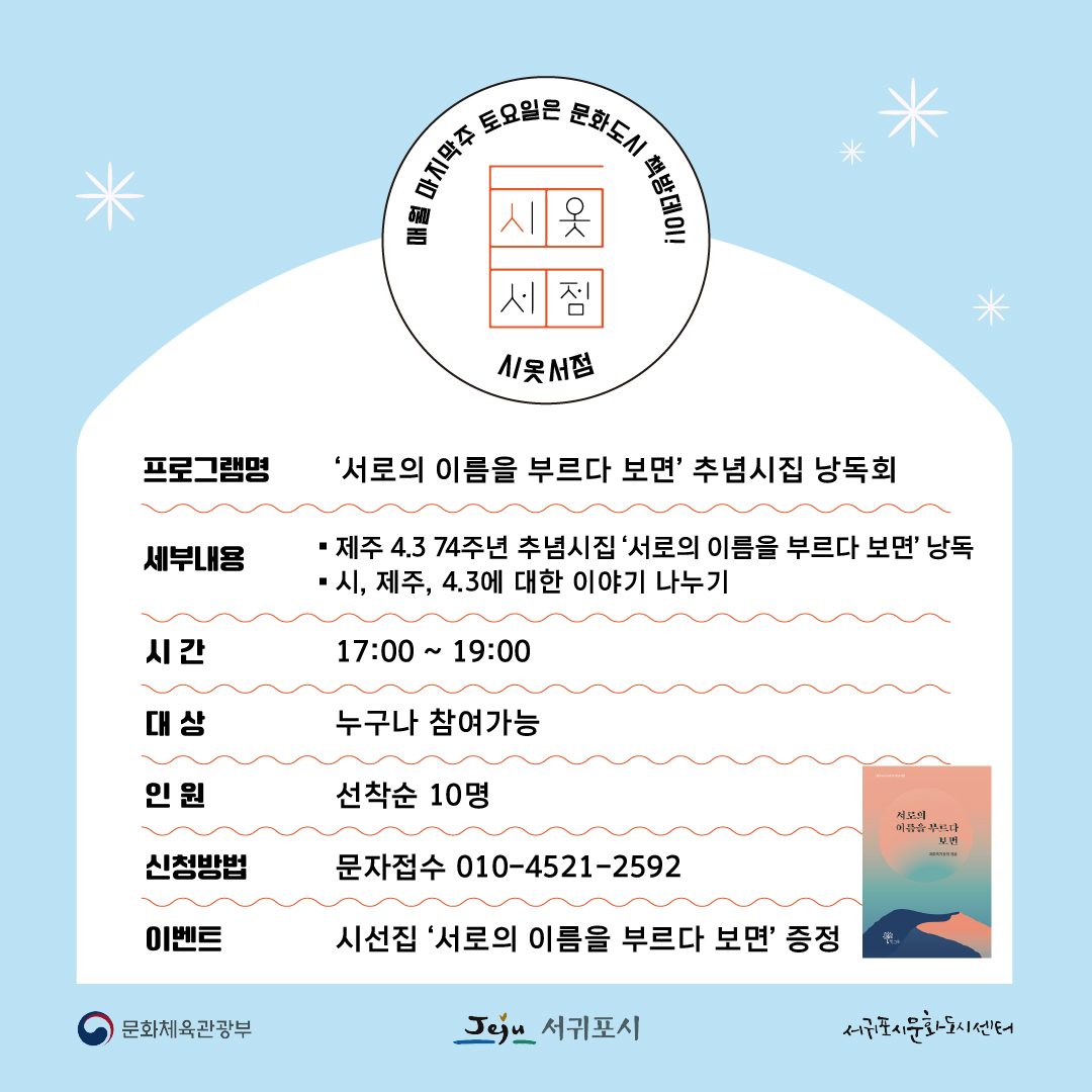 - [제주 4·3 74주년 추념시집 ‘서로의 이름을 부르다 보면’ 낭독회]
