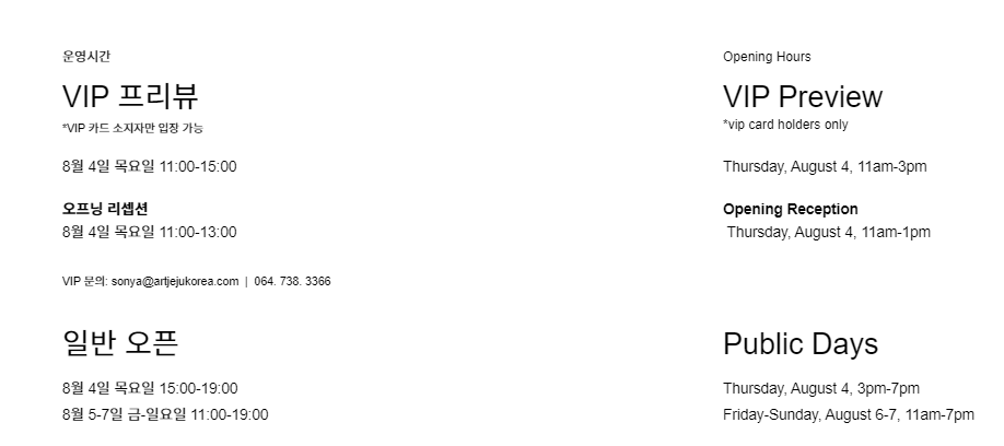 오프닝 립셉션 8월 4일(목) 11:00~13:00