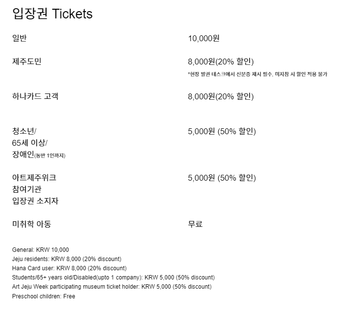 아트제주2022 티켓으로 입장권 할인받고 맛집, 카페 음료 할인 혜택까지 모두 받아보세요.