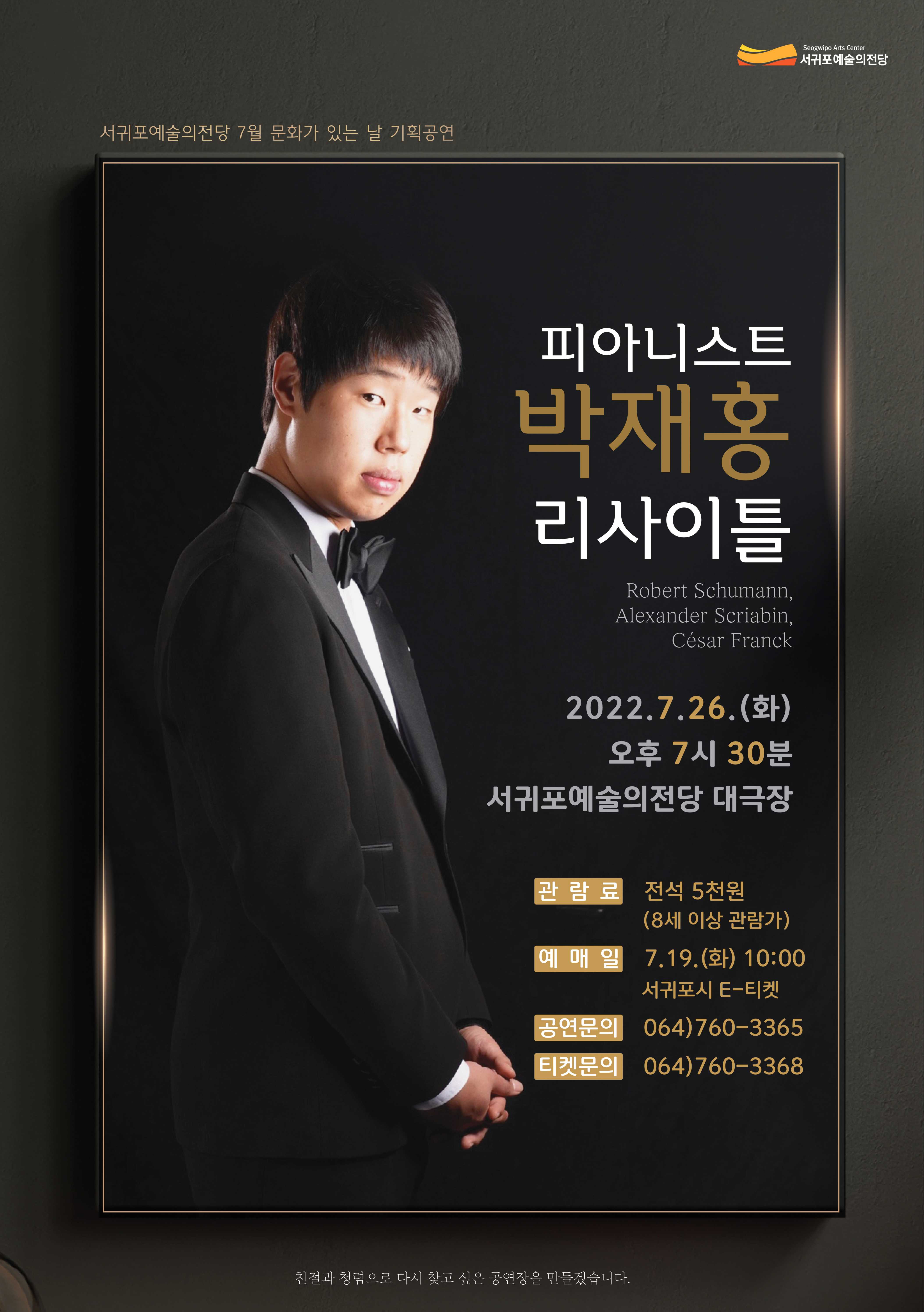 서귀포예술의전당 7월 문화가 있는 날 기획공연 <피아니스트 박재홍 리사이틀>