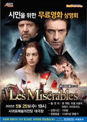 서귀포예술의전당 무료 영화 상영 "레미제라블"
