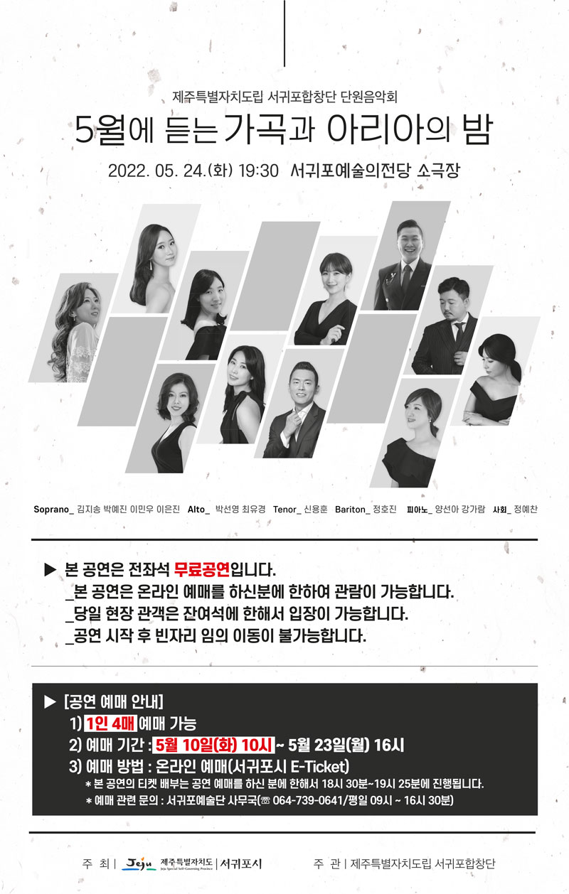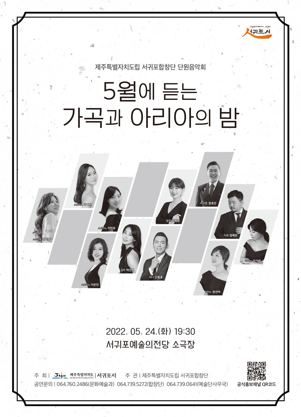 제주특별자치도립 서귀포합창단 단원 음악회 <5월에 듣는 가곡과 아리아의 밤>
