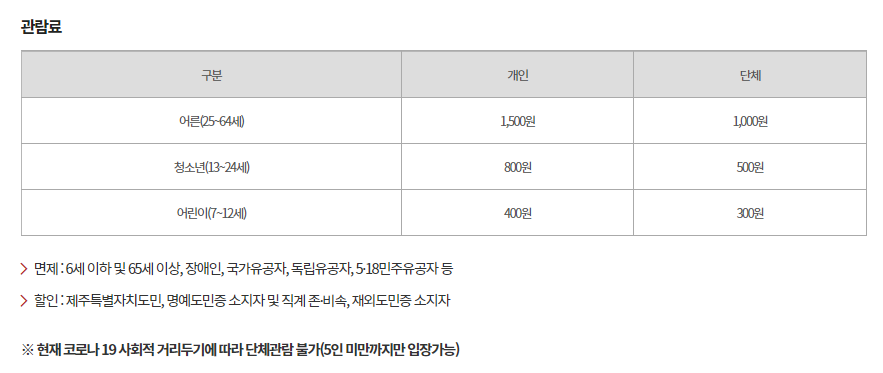 * 휴관일 : 매주 월요일, 1월 1일, 설날, 추석