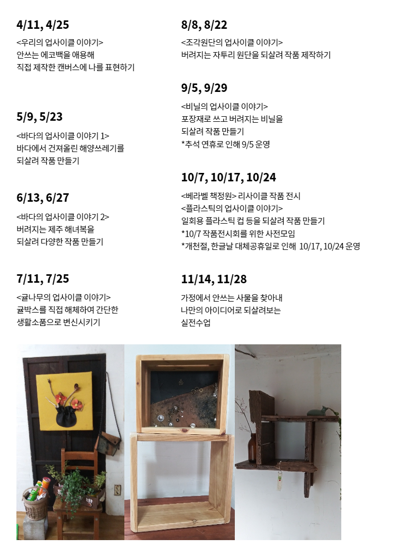 주요활동 : 업사이클링 작품 제작, 전시회 참여, 전시회 기획(활동계획서 참고)