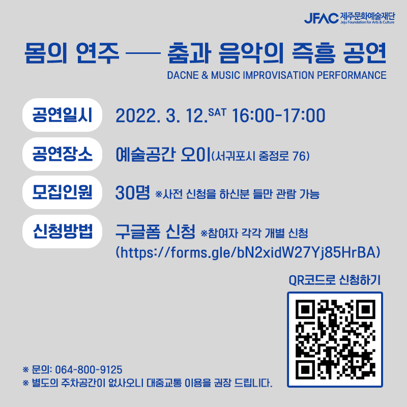 [제주문화예술의섬 예술요원 연계 프로젝트] 몸의 연주 dance & music improvisation performance _ 접수마감