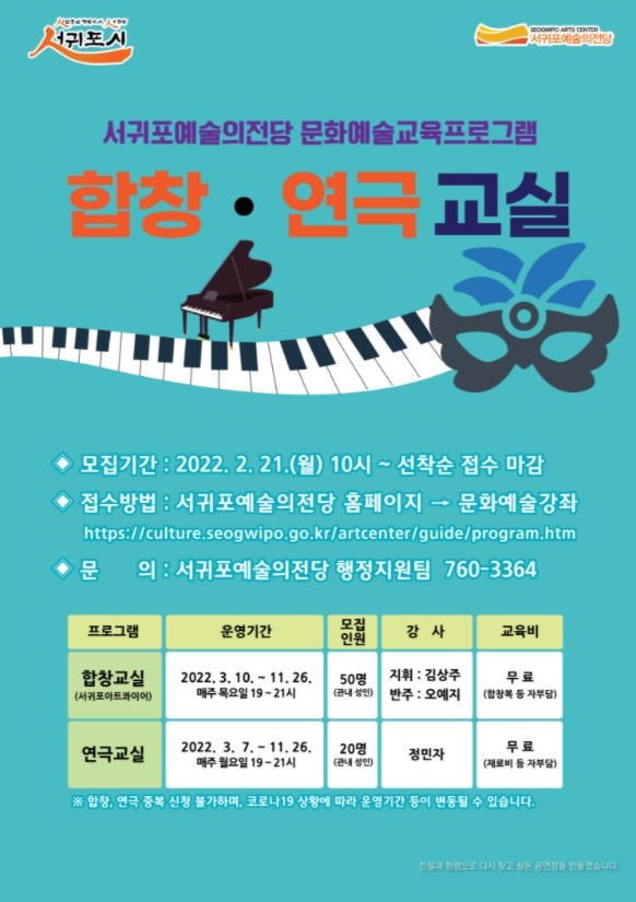 서귀포예술의전당 문화 예술교육 프로그램 <합창·연극 교실>